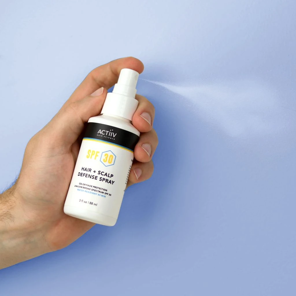 Give your scalp and hair consistent protection from the sun using Actiiv’s SPF 30 Hair + Scalp Defense Spray. We all know how damaging UVA/UVB rays can be to our skin, but our scalps are usually left unprotected. This SPF scalp spray was formulated to give optimal protection to those often forgotten-about areas, as well as keep your scalp healthy to encourage thicker, fuller hair growth. It also helps to protect your hair against color fading, discoloration and damage from the sun and free radicals.