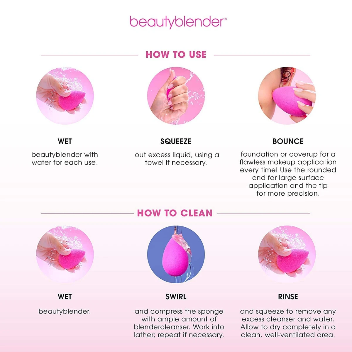 No clown cheeks here.This mid-sized applicator, in a gorgeous grapefruit shade, is designed to deliver and seamlessly blend the perfect amount of blush. The exclusive aqua-activated™ material provides an airbrushed application and absorbs minimal product, so your favorite formula lands on your complexion, not your sponge.