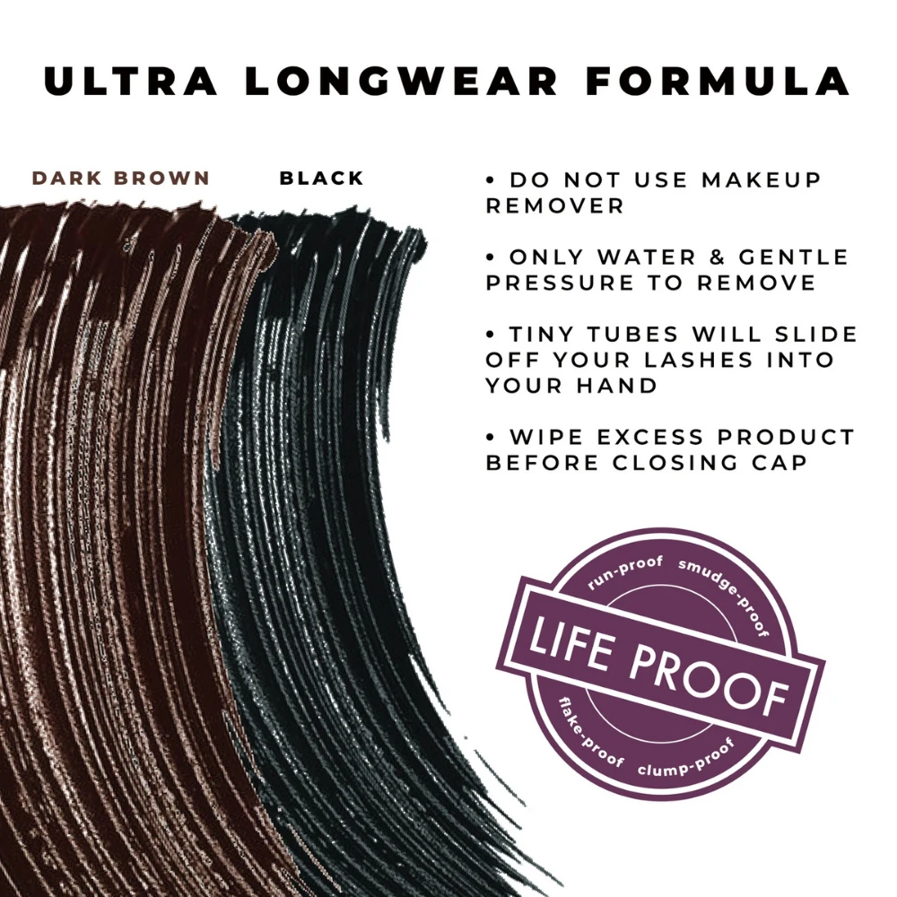 Blinc’s Tubing Mascara adds both volume and length, to give you a radiant natural look that lasts all day. Neither water nor pressure alone will remove Blinc Mascara, only the combination of lots of warm water and gentle pressure (no need for harsh makeup removers) will slide the tiny tubes effortlessly off your lashes into your hand. Upon removal, you will actually see the tiny tubes slide into your hand.