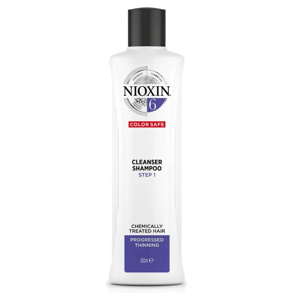 Nioxin’s cleanser shampoo System 6 for bleached and chemically treated hair with progressed thinning is the first step of a three part Nioxin regimen, specially formulated to strengthen the hair and amplify hair structure.