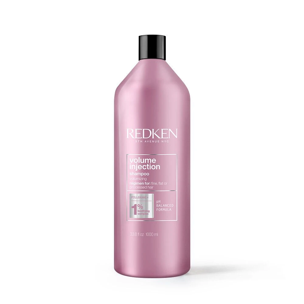 Redken’s Volume Injection Shampoo is formulated with Redken’s Bodifying Complex with Filloxane helps to provide instant volume to fine, flat, or processed hair.