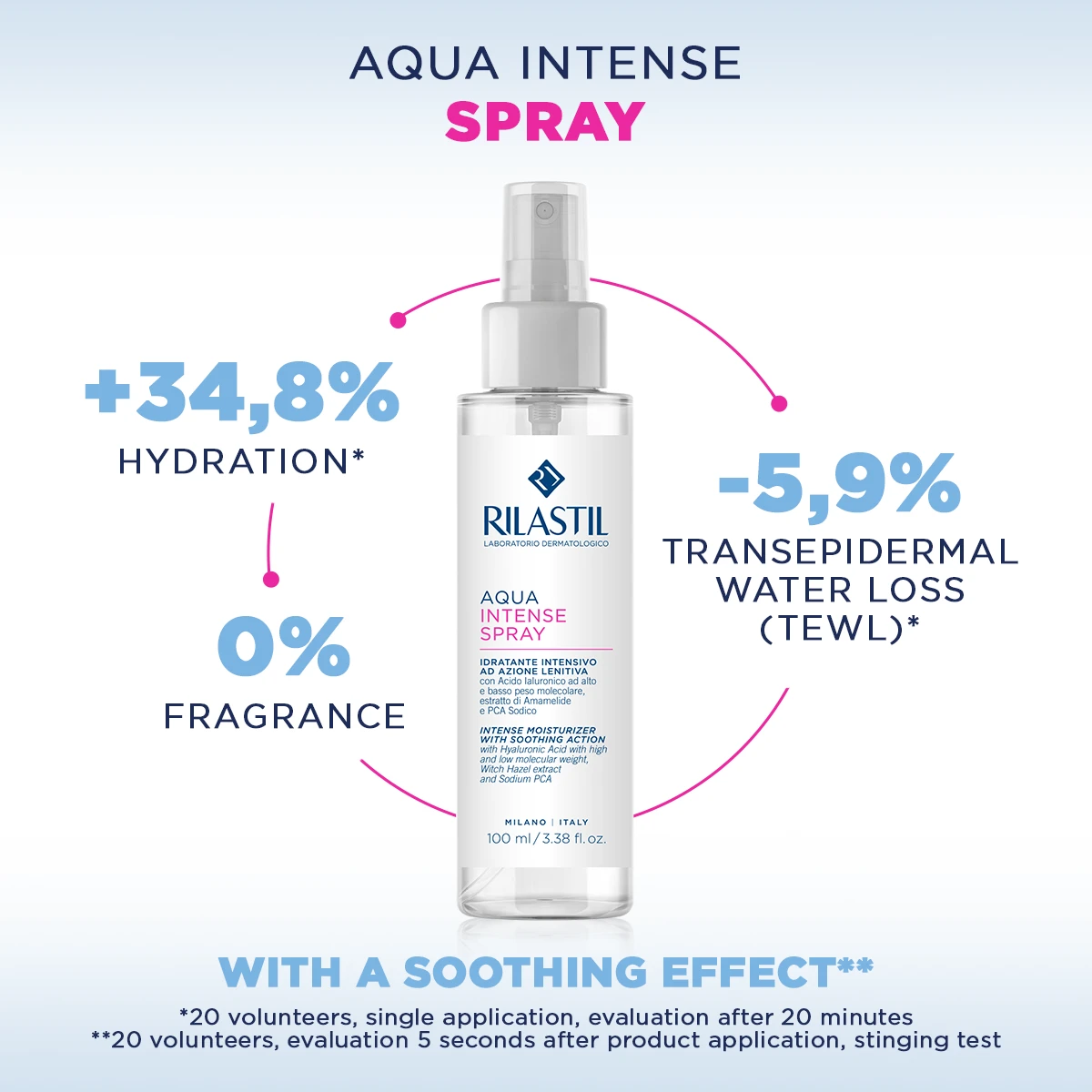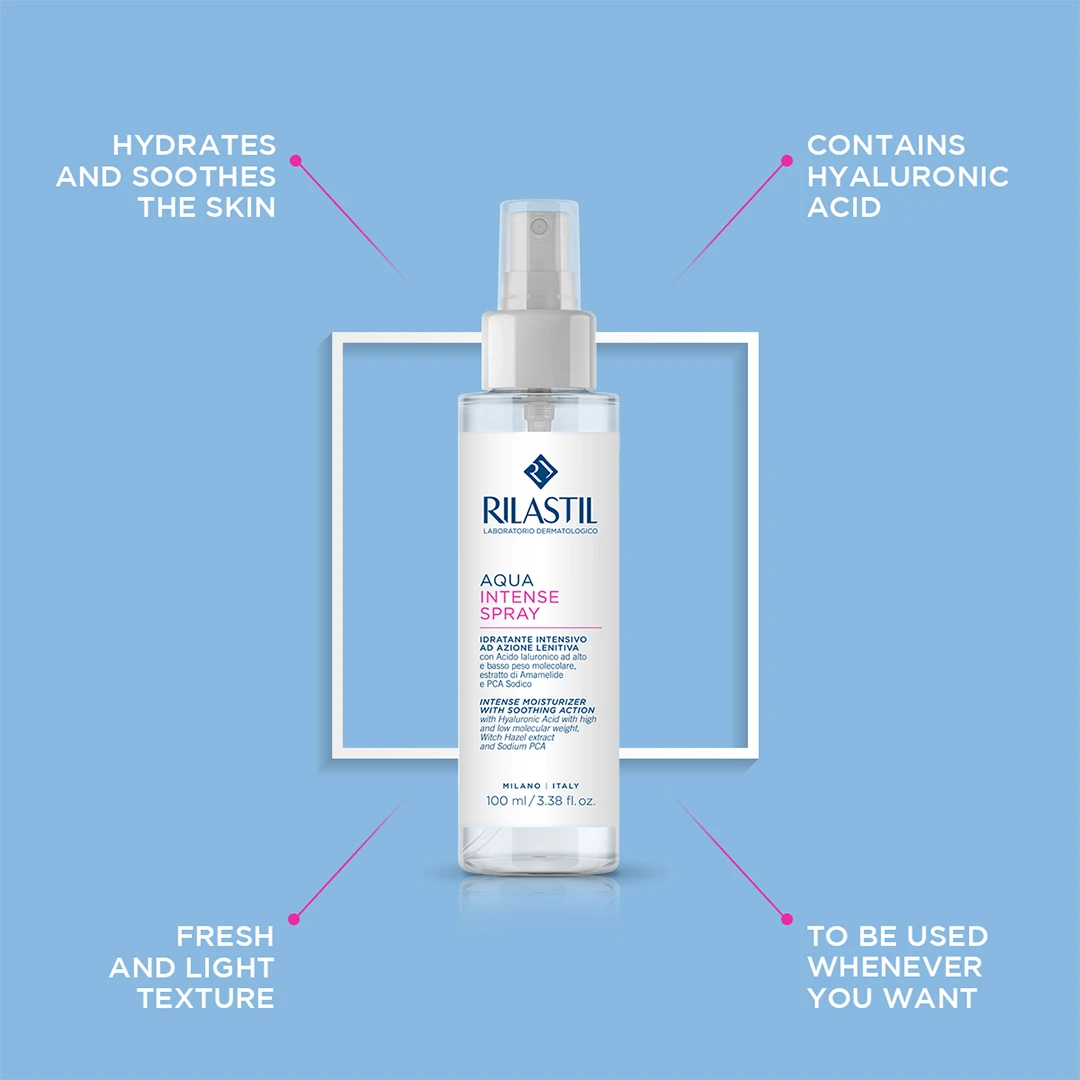 Rilastil Aqua Intense Spray Intense is a concentrated daily moisturizer with a fresh and light texture. Suitable for all skin types including the most sensitive ones.