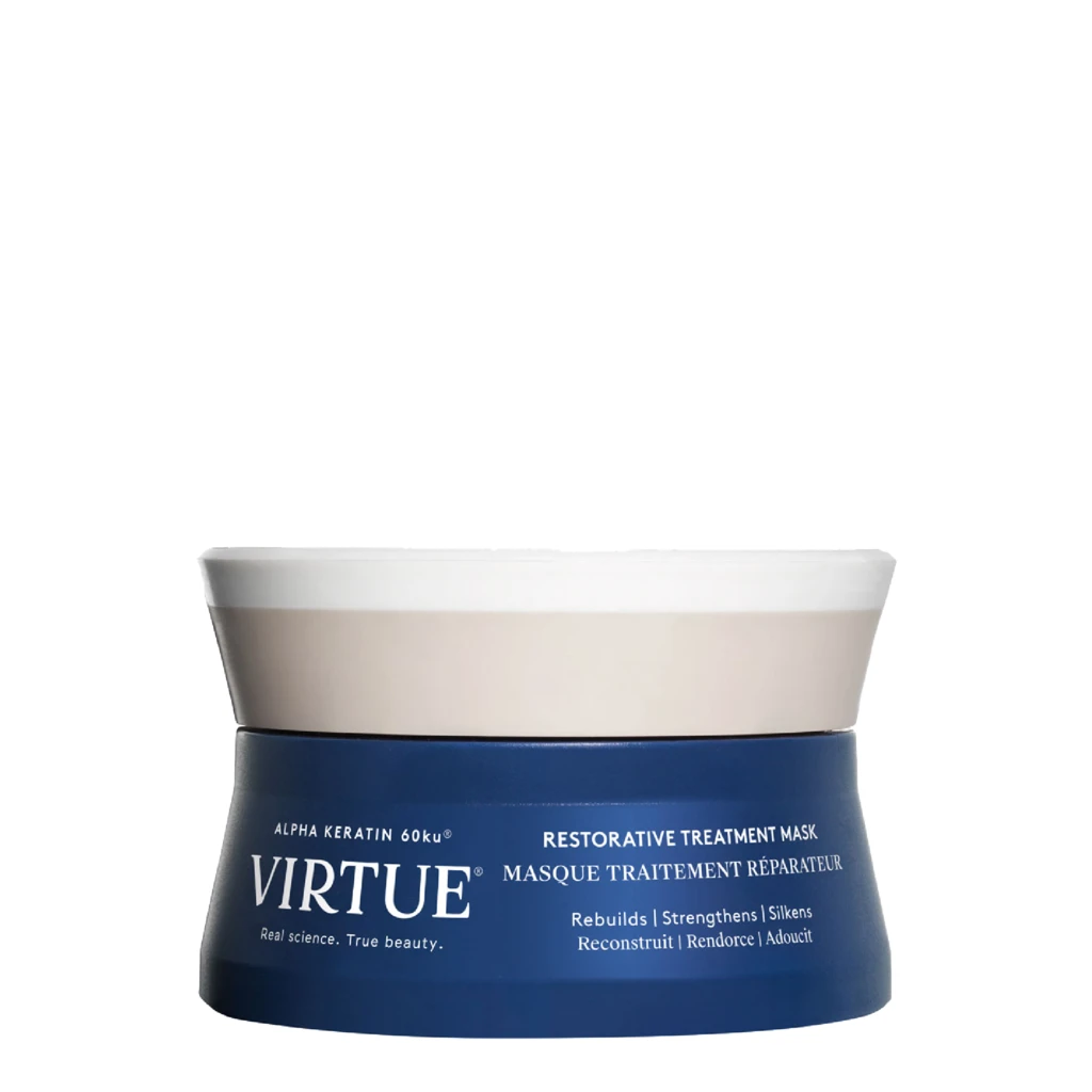 Virtue Labs Restorative Treatment Mask deeply hydrates and repairs hair without weighing it down. This lightweight formula works on all hair types, adding shine, moisture, and smoothing hair in under 3 minutes. Infused with our proprietary Alpha Keratin 60ku®, this product delivers an immediate and intense hydrating and conditioning boost for silky soft hair that’s immediately reinvigorated with health and nourishment. Color-safe, paraben-free, gluten-free.