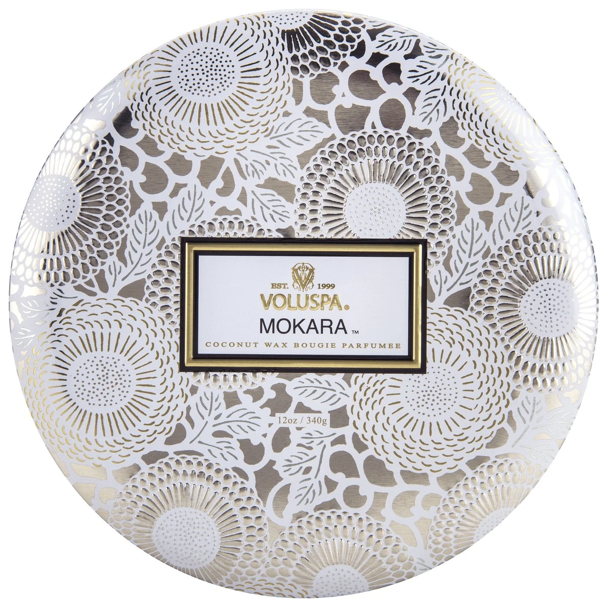 Rich jewel tones adorn this beautifully patterned metallic option, with fragrance wafting from each of its three wicks. The ornate tin features Japanese-inspired art and includes a lid, perfect for keepsakes once it has finished burning.